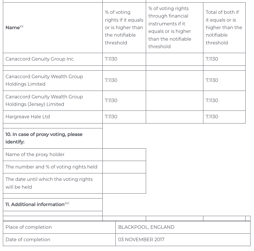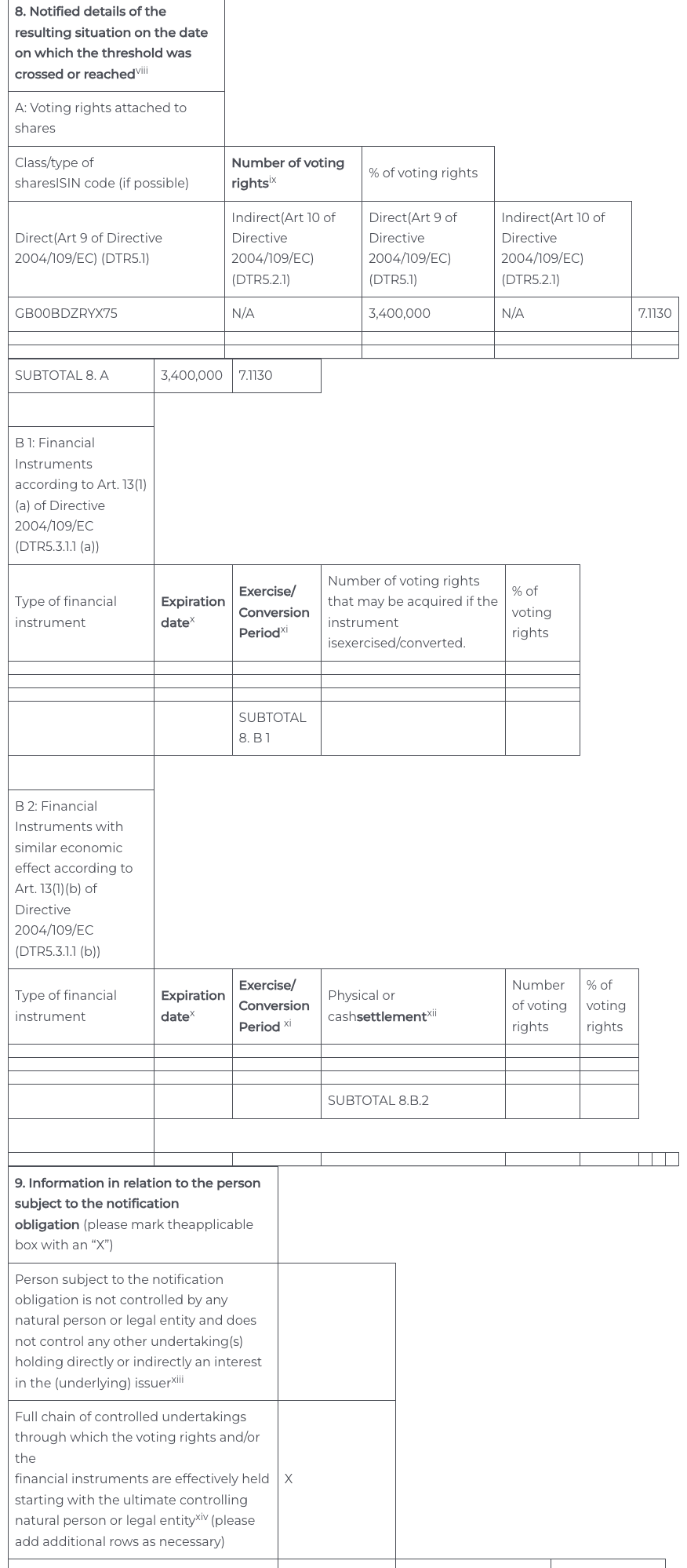 TR-1: Standard form for notification of major holdings