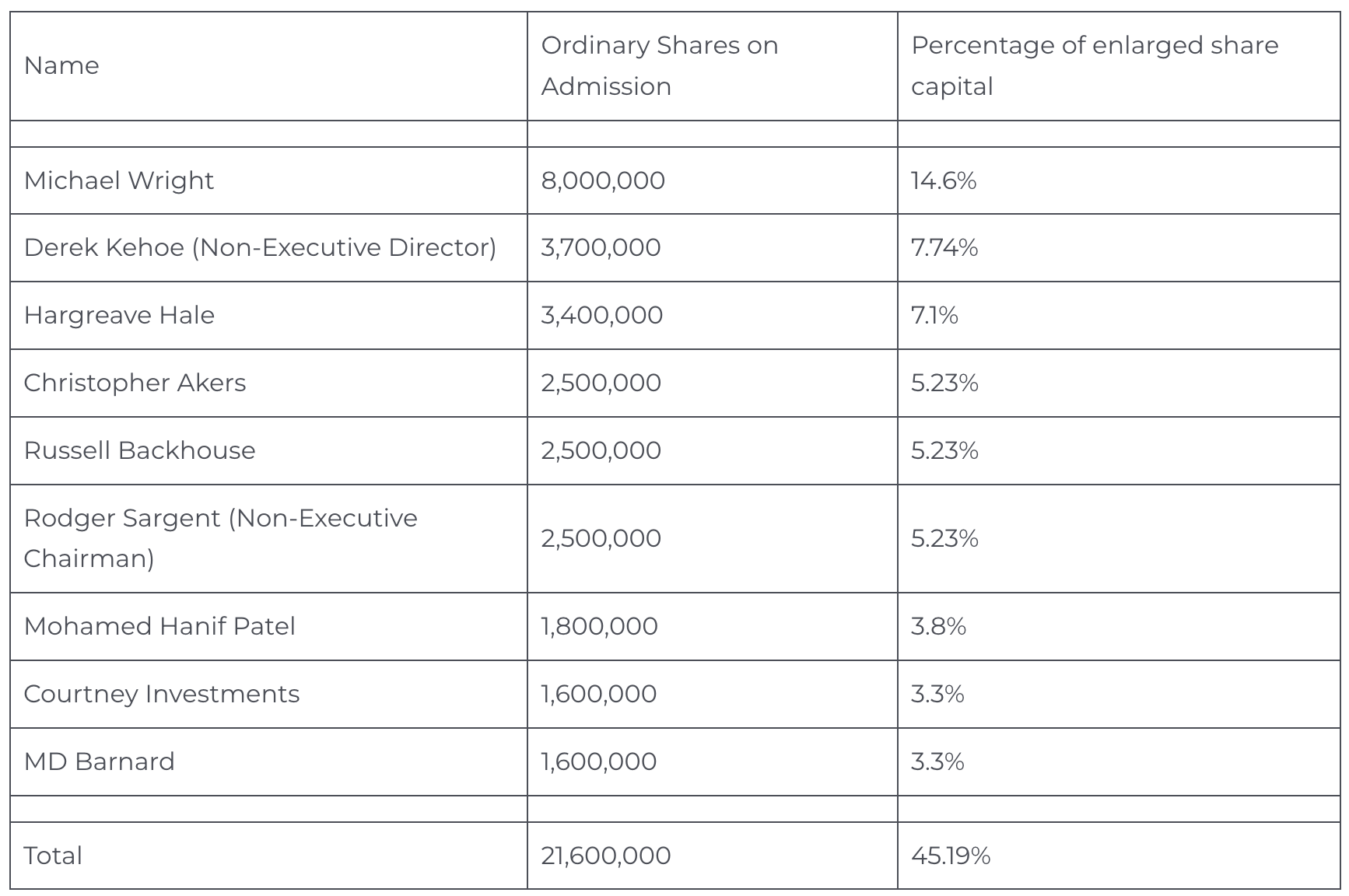 On Admission, the following Shareholders will have a notifiable interest in the issued shares of the Company: