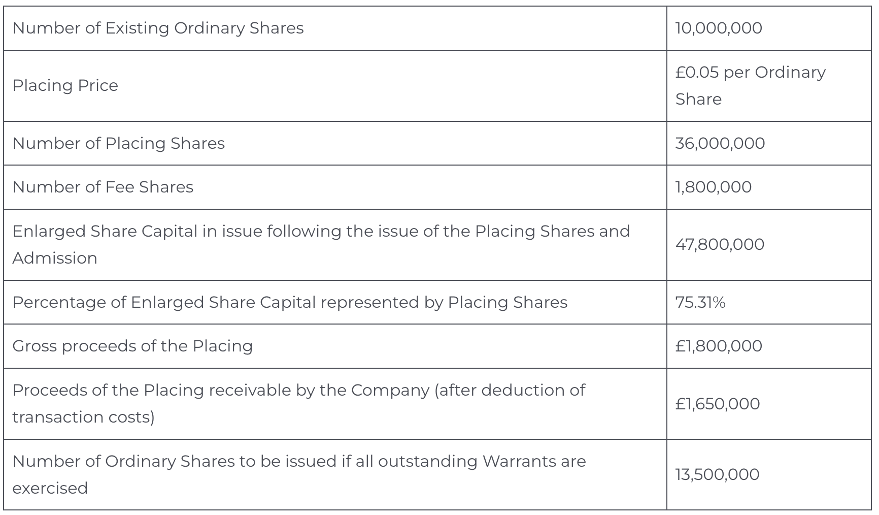 Baskerville Capital PLC (LSE: BASK), a newly established company formed to acquire a company or business with a technology focus, announces that it has successfully raised gross proceeds of £1.8m through the placing of 36,000,000 Ordinary Shares at a price of £0.05 per Ordinary Share.