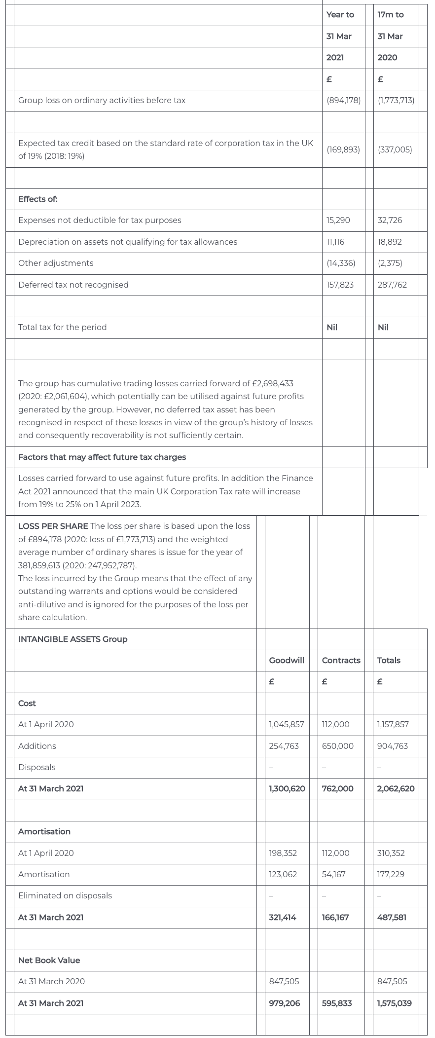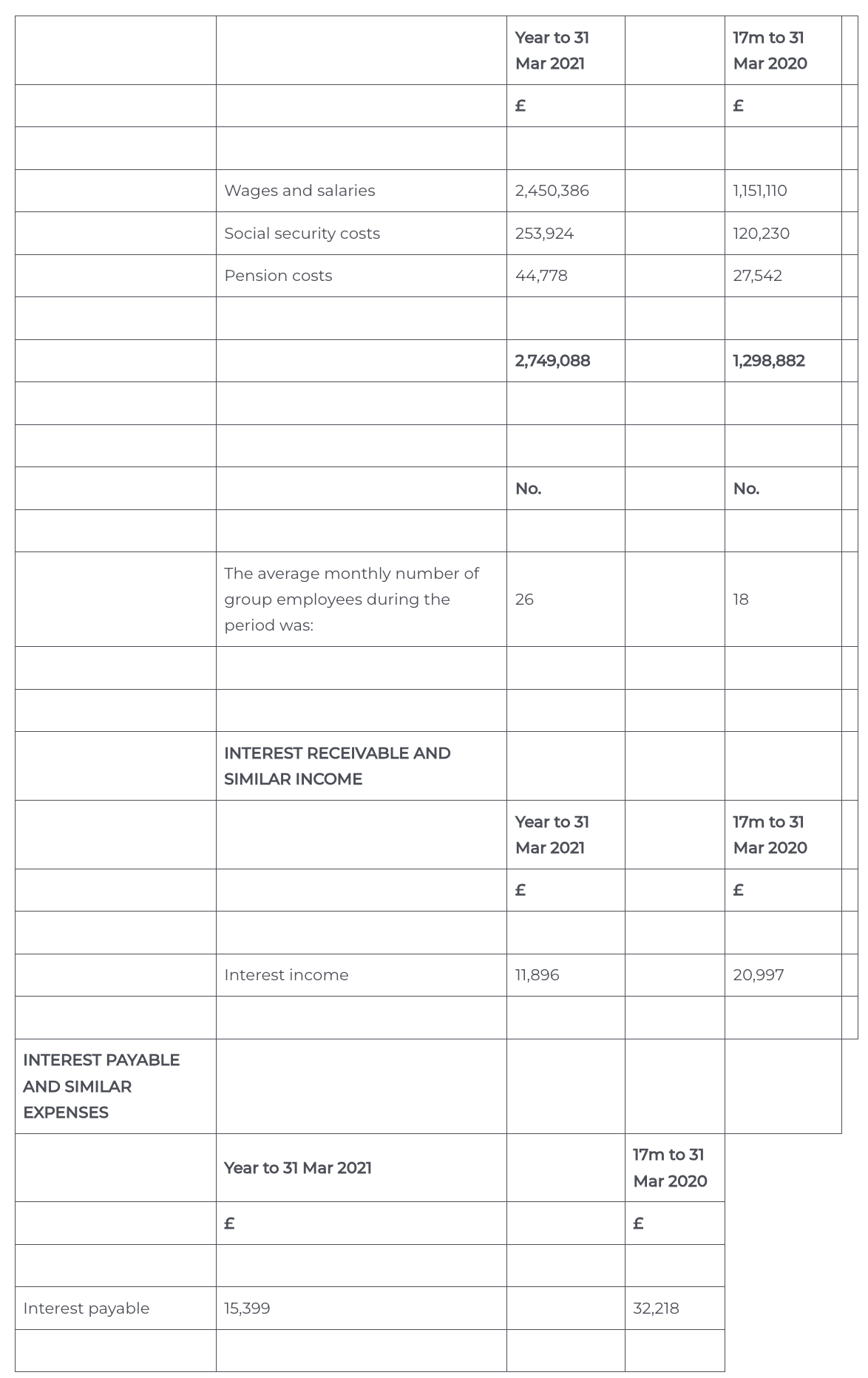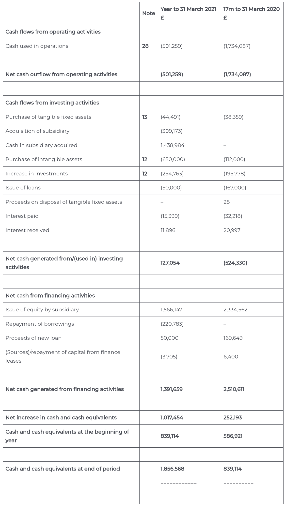 Because of the increase in costs associated with the investments mentioned above, the business made an operating loss before acquisition related expenses of £846,057 in the year to 31 March 2021 compared to a loss of £1,762,492 in the 17 month period to 31 March 2020.