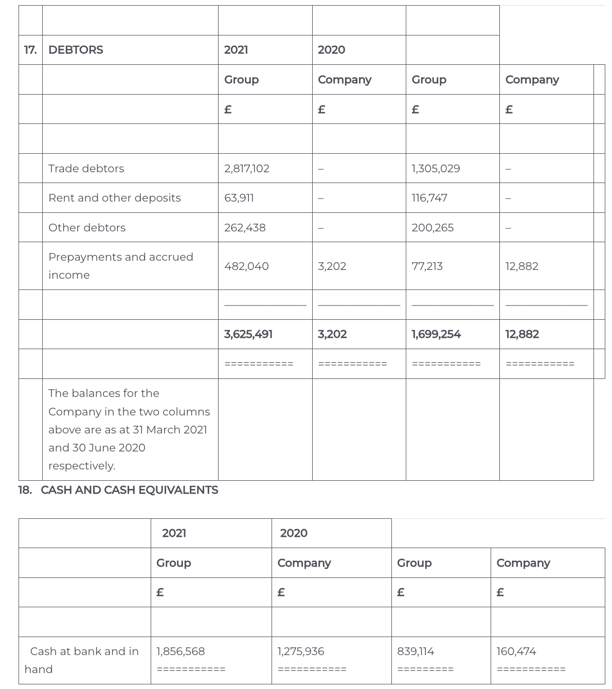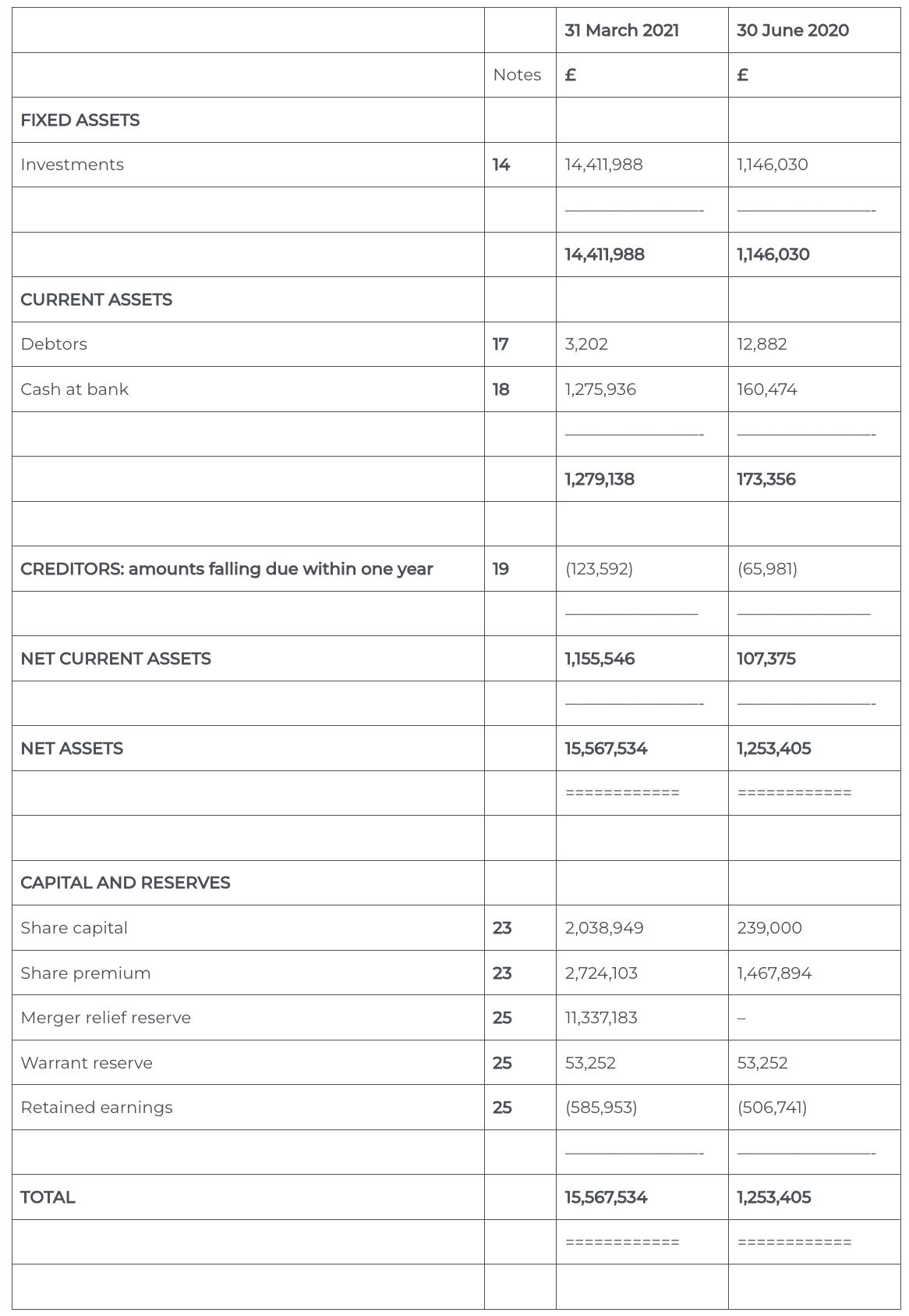 The balances for the Company in the two columns above are as at 31 March 2021 and 30 June 2020 respectively.