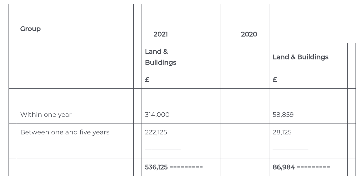 At 31 March 2021 the Group and Company had future minimum commitments under non-cancellable operating leases as set out below: