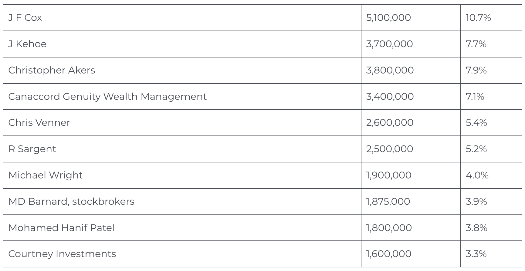 On 30 June 2020, the following interests in 3% or more of the issued share capital appear in the register: