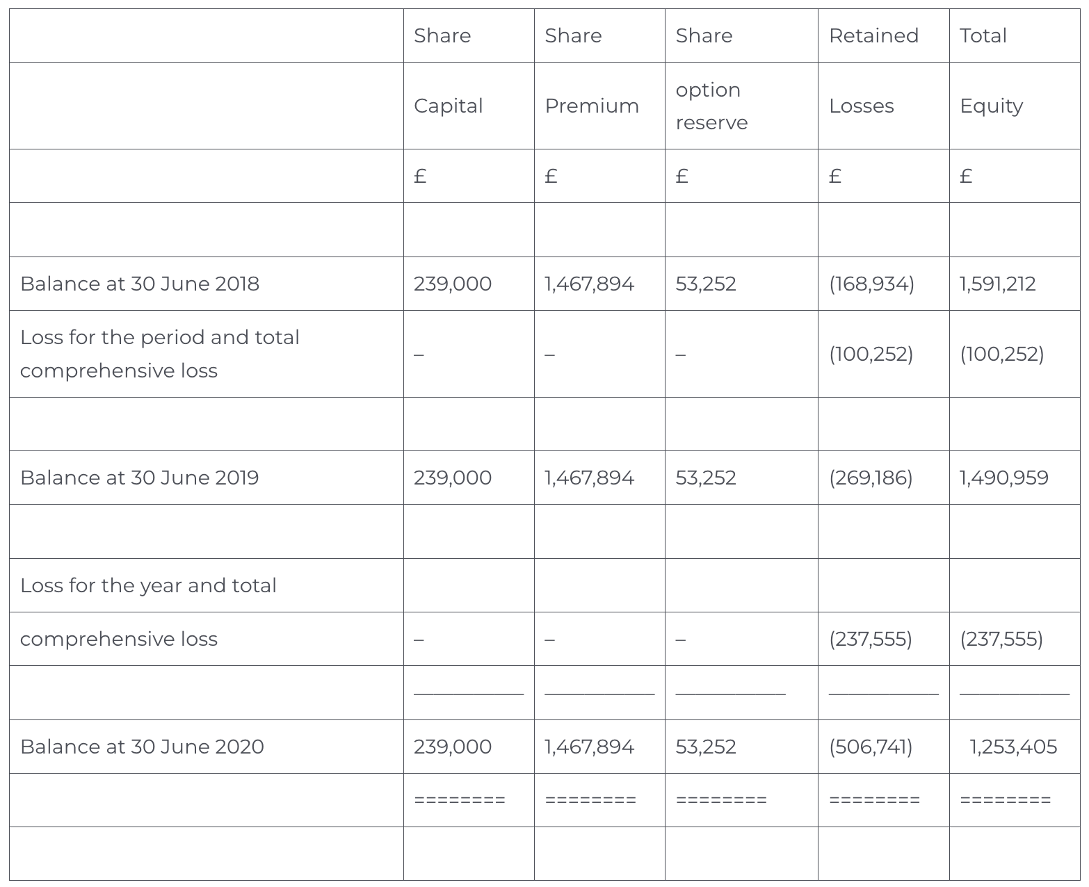 STATEMENT OF CHANGES IN EQUITY FOR THE YEAR ENDED 30 JUNE 2020
