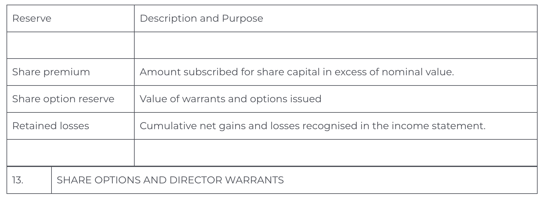 Options issued to shareholders were issued as one option for every four ordinary shares purchased. As they were part of the fundraise they have not been valued under IFRS 2.