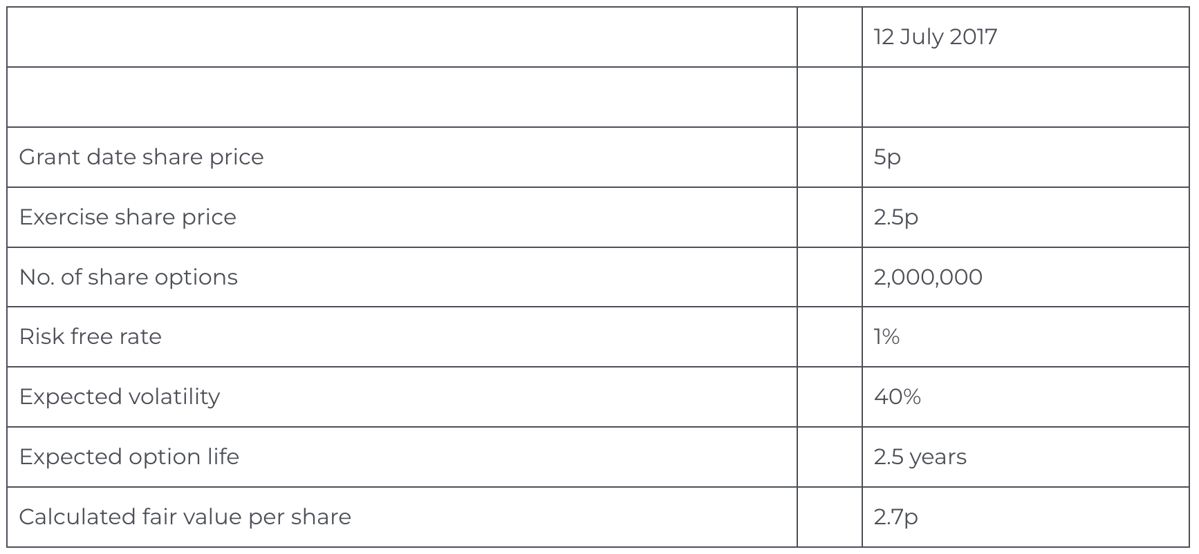 The total share-based payment expense recognised in the statement of comprehensive income for the year ended 30 June 2020 in respect of these options granted was £nil (2019: £nil).