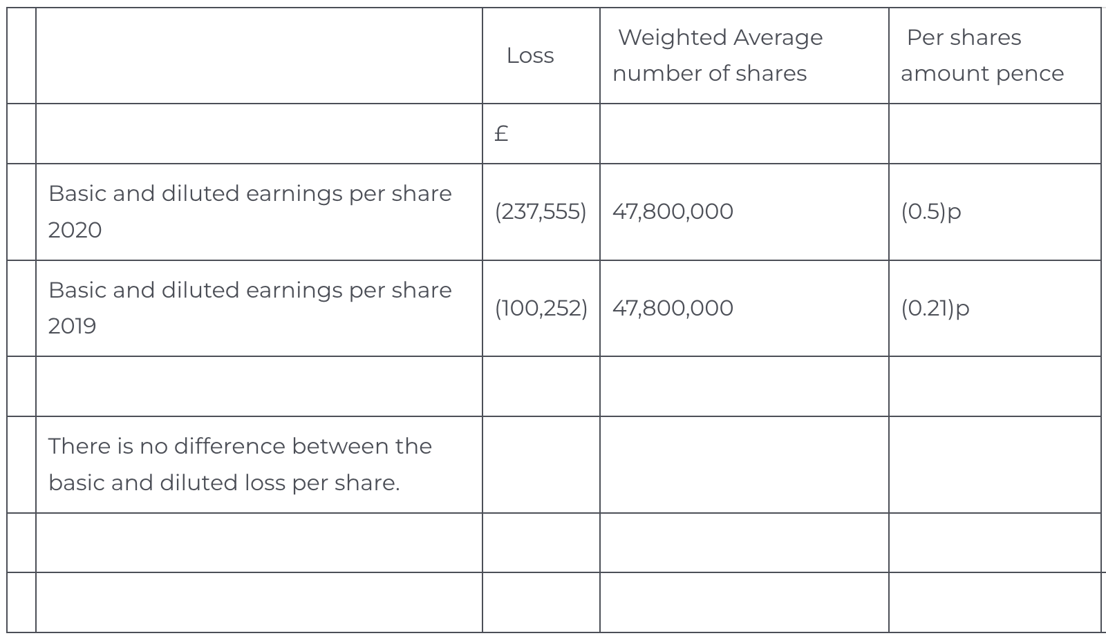 The loss before and after taxation for the year was £237,554 (2019: £100,252). The directors do not recommend payment of a dividend.