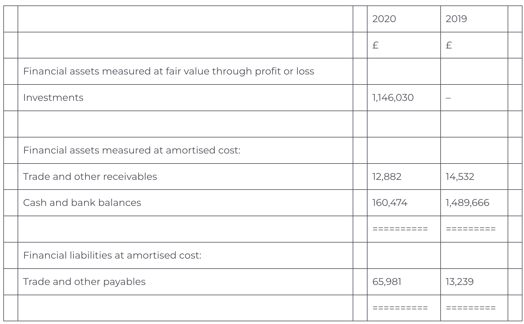 During the year the Company acquired an interest in Oberon Investments Limited (“Oberon”). This investment is an unlisted investment and therefore, in accordance with IFRS 9 is classified as a level 3 financial instrument. As described in the accounting polices, investments are measured at fair value through profit or loss. The Directors’ are of the view that as the investment was acquired during the year combined with the fact that there has been no material changes to Oberon’s activities or performance since the acquisition date that the cost of the investment is equivalent to its fair value at the year-end date.